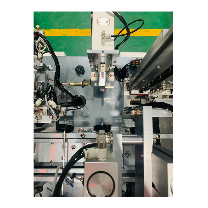 該設(shè)備主要為是抽氣泵的抽氣筒組裝,設(shè)備采用多工位轉(zhuǎn)盤搬運結(jié)構(gòu),通過振動盤有序上料,運用PLC與觸摸屏操控,實現(xiàn)產(chǎn)品組裝,檢測,良次品區(qū)分等工藝。 設(shè)備簡單易操作,可以實現(xiàn)1人管理多套設(shè)備的理想化車間管理。
