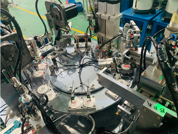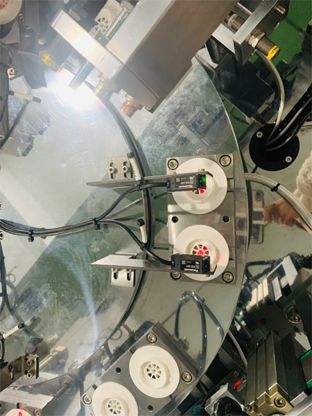 該設(shè)備主要是為真空袋的氣閥全自動(dòng)組裝機(jī),設(shè)備采用多工位轉(zhuǎn)盤搬運(yùn)結(jié)構(gòu),通過振動(dòng)盤有序上料,運(yùn)用PLC與觸摸屏操控,實(shí)現(xiàn)產(chǎn)品組裝,檢測(cè),良次品區(qū)分等工藝。 設(shè)備簡(jiǎn)單易操作,可以實(shí)現(xiàn)1人管理多套設(shè)備的理想化車間管理。